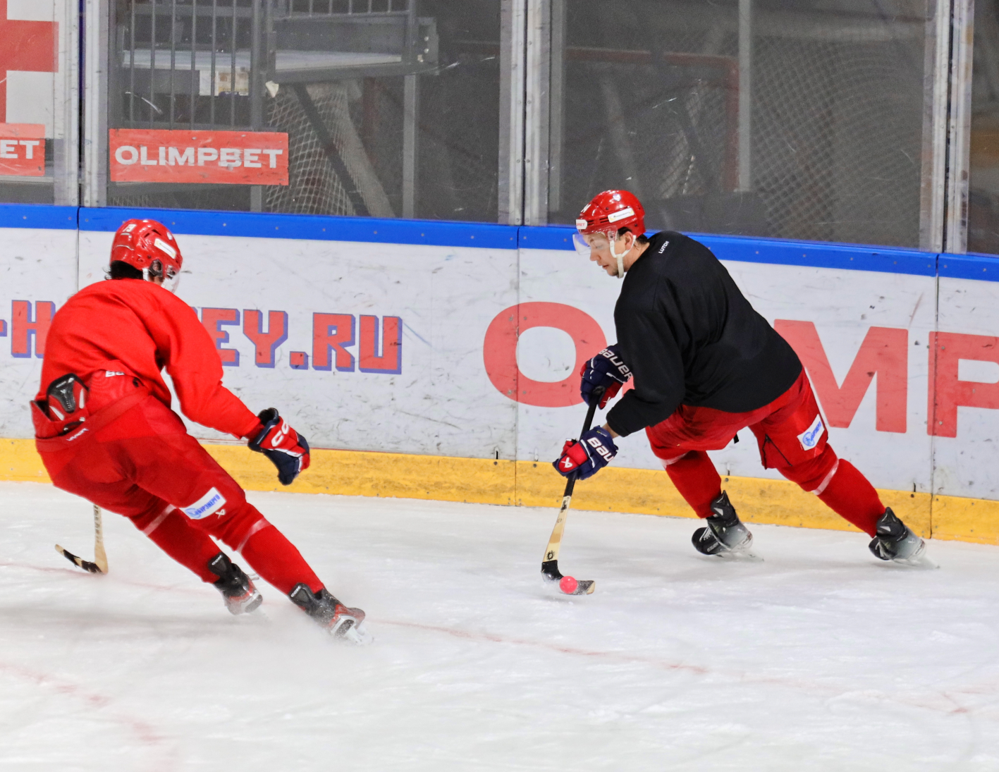 Команда под руководством Рината Хасанова провела тренировочное занятие, которое включало две части: первая часть была традиционной, а вторая — в формате игры в хоккей с мячом.