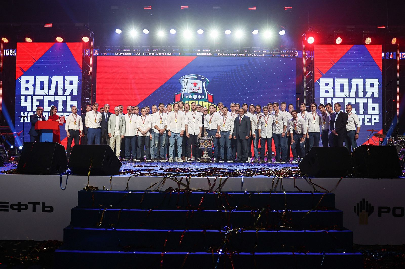 Торжественное мероприятие прошло на ЦСКА АРЕНЕ в присутствии большого количества почётных гостей и преданных болельщиков армейского клуба.