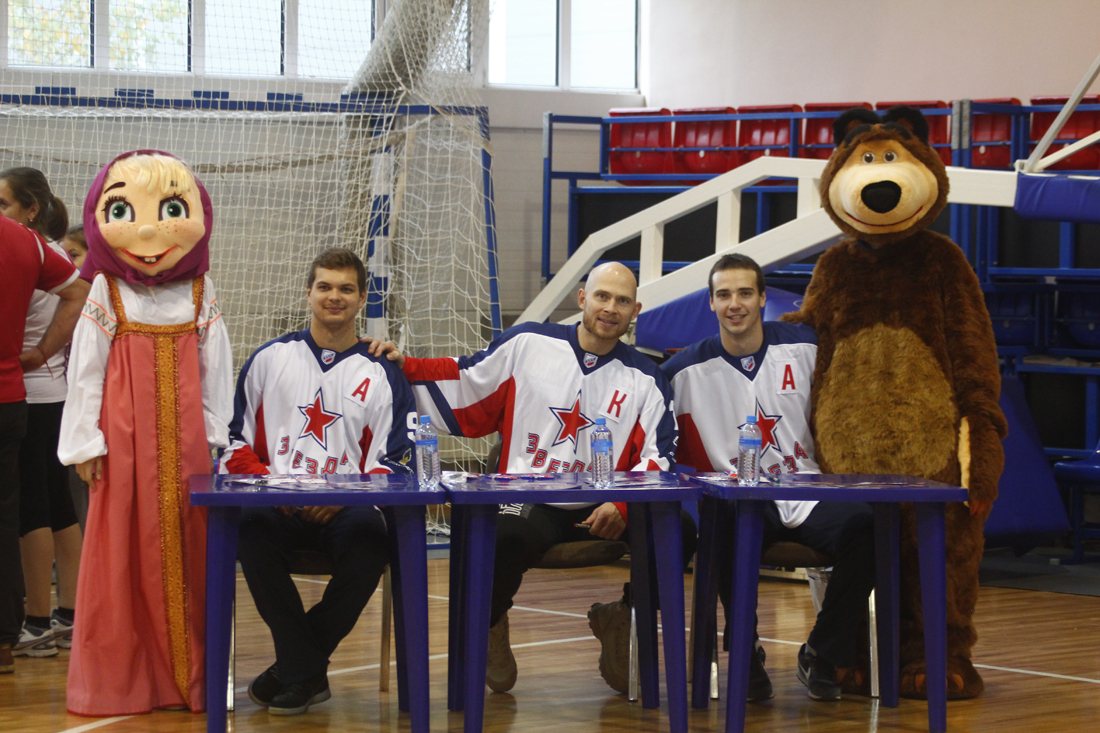 На этом хоккейный практикум не закончился. Владимир Пешехонов устроил мастер-класс по хоккейным упражнениям в комбинированной эстафете. Во время праздника работали детские аниматоры, которые так же с удовольствием приняли участие в автограф-сессии с нашими спортсменами. Спортивный день удался на славу!